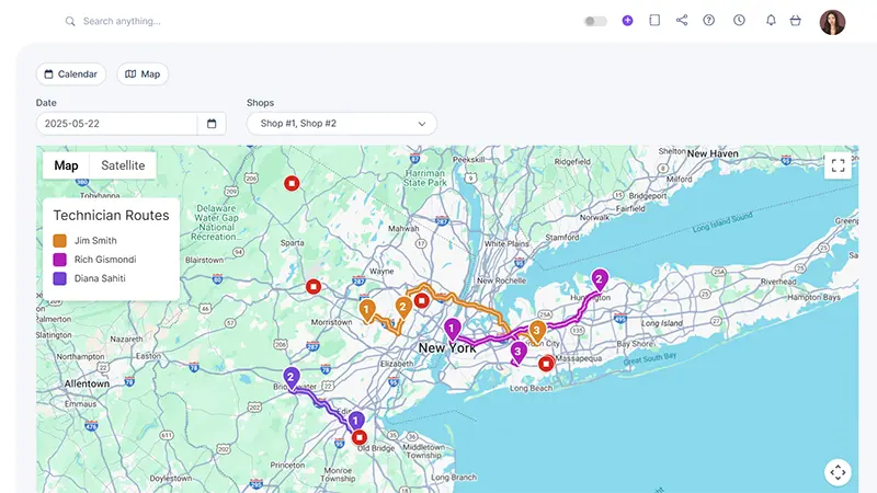 Assign jobs efficiently using a drag-and-drop calendar and optimize technician routes for faster service.