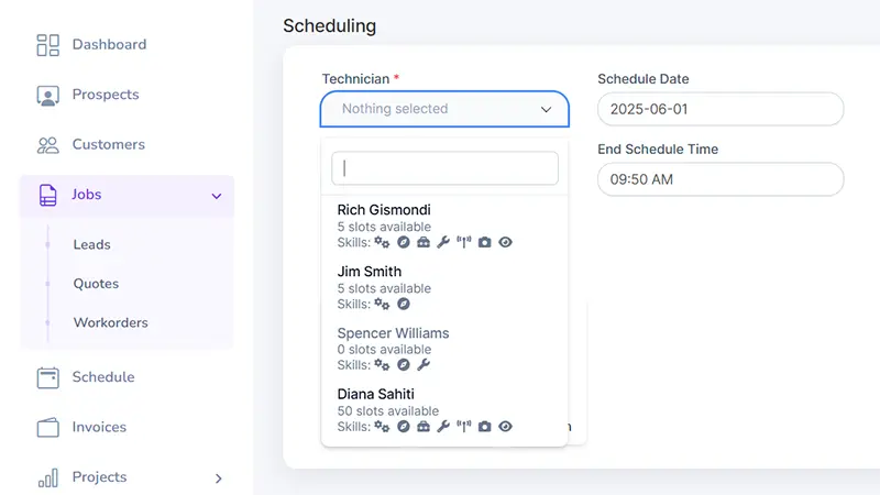 Our efficient scheduling tool lets you easily view each technician’s skills and workload, helping you assign the right jobs to the right people.