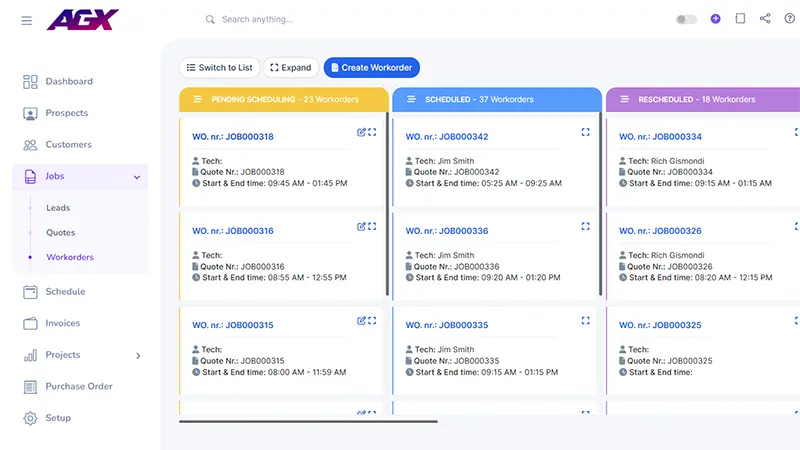 AGX’s two main features make your work easier: fast job creation from quotes to schedules, plus easy-to-use portals that keep customers and techs in the loop.