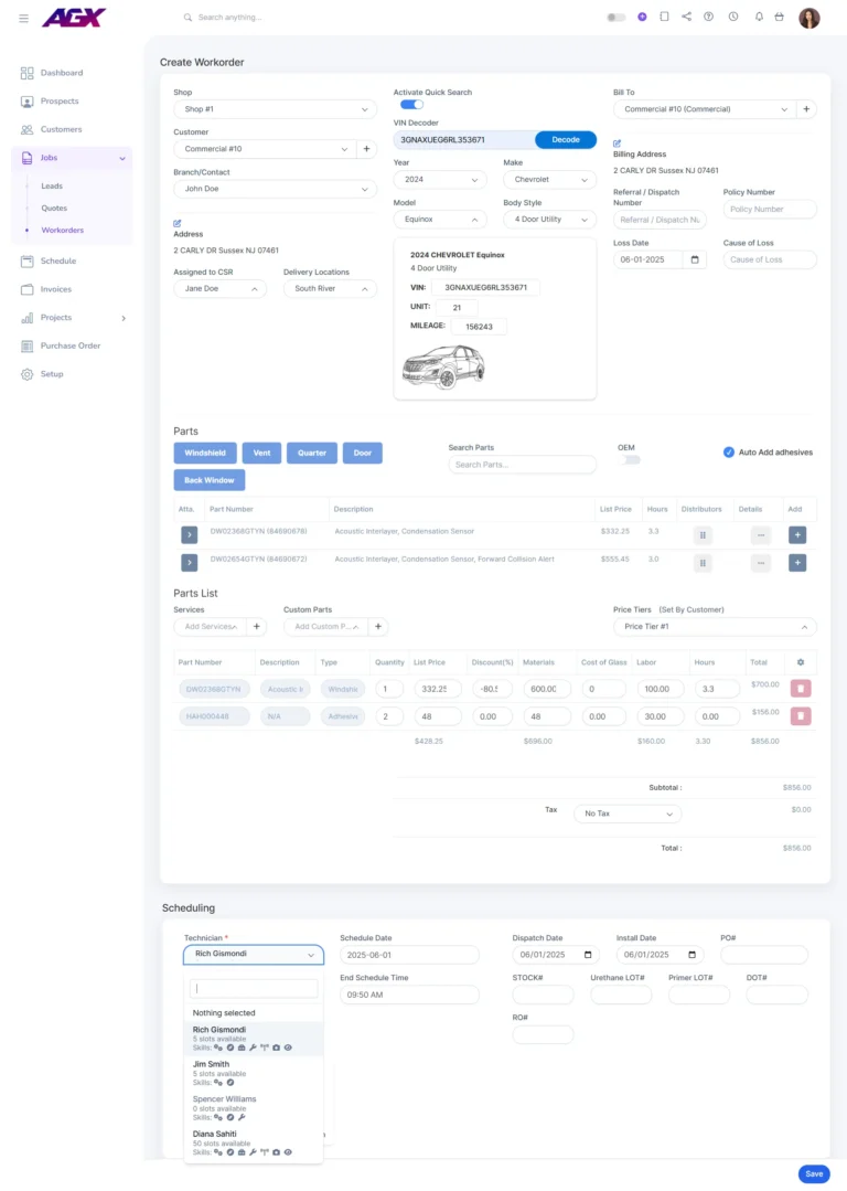 Quickly create accurate work orders for both retail and commercial customers with CRM tools designed specifically for auto glass services.